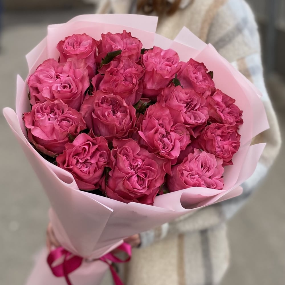 15 пионовидных эквадорских роз премиум класса