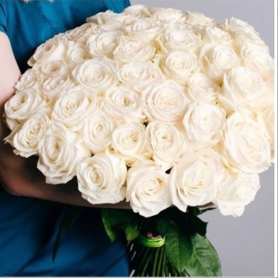 Сияющий букет из 45 белых роз подарит радость и красоту на день рождения, юбилей, на рождение ребенка, свадьбу и иное важное событие.
