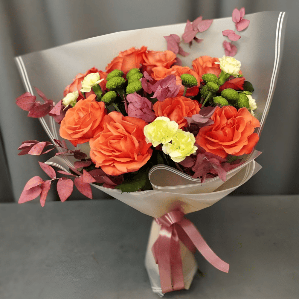Букет "Фламенко" — это настоящий танец страсти и эмоций, собранный из лучших цветочных акцентов, которые обещают раскрасить жизнь даже самым будним днём. Состав: роза - 9 шт., хризантема кустовая делигринн - 2 шт., диантус кустовой - 3 шт., декоративная зелень - 3 шт., упаковка, ленты ⠀ Повод порадовать дорогих и близких людей букетом цветов может быть самым разным: день рождения, юбилей, памятная дата, встреча или свидание, выписка с новорождённым из роддома, желание поделиться пожеланиями или стремлениями через цветочный подарок, цветы в качестве благодарности или извинения. ⠀ Мы осуществляем доставку цветов, букетов и цветочных композиций по Красноярску, чтобы вы могли порадовать своих близких даже на расстоянии. Наши цветочные презенты идеально подходят для любого случая – дня рождения, юбилея или другого праздника. Не упустите шанс порадовать своих близких уникальными авторскими букетами и цветочными композициями с доставкой в Красноярске. Закажите у нас прямо сейчас и подарите незабываемые моменты радости. ⠀ Дорогие клиенты, пожалуйста, уточняйте наличие товара в единой справочной службе Центра Флористики: +7 (391) 227‒26‒68 или оставьте заявку на сайте и мы перезвоним Вам.