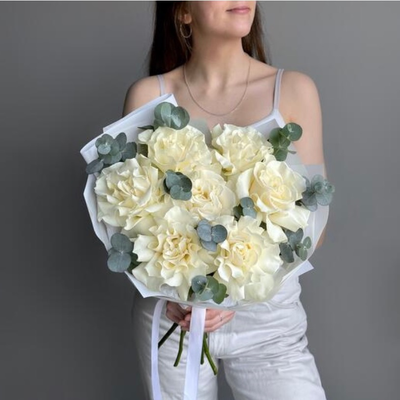 Букет французских роз с эвкалиптом