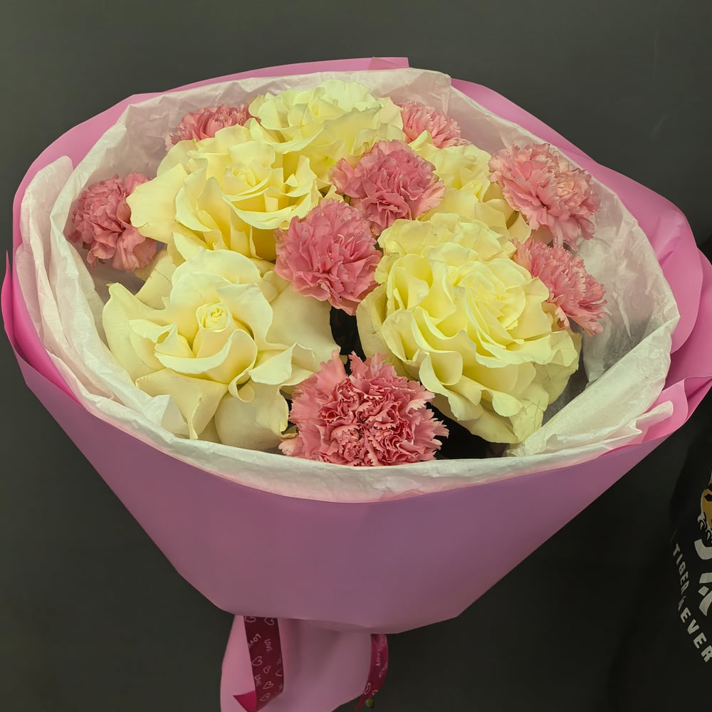 Прекрасный, нежный и очень красивый букет из необычных французских роз и пушистых диантусов 💐