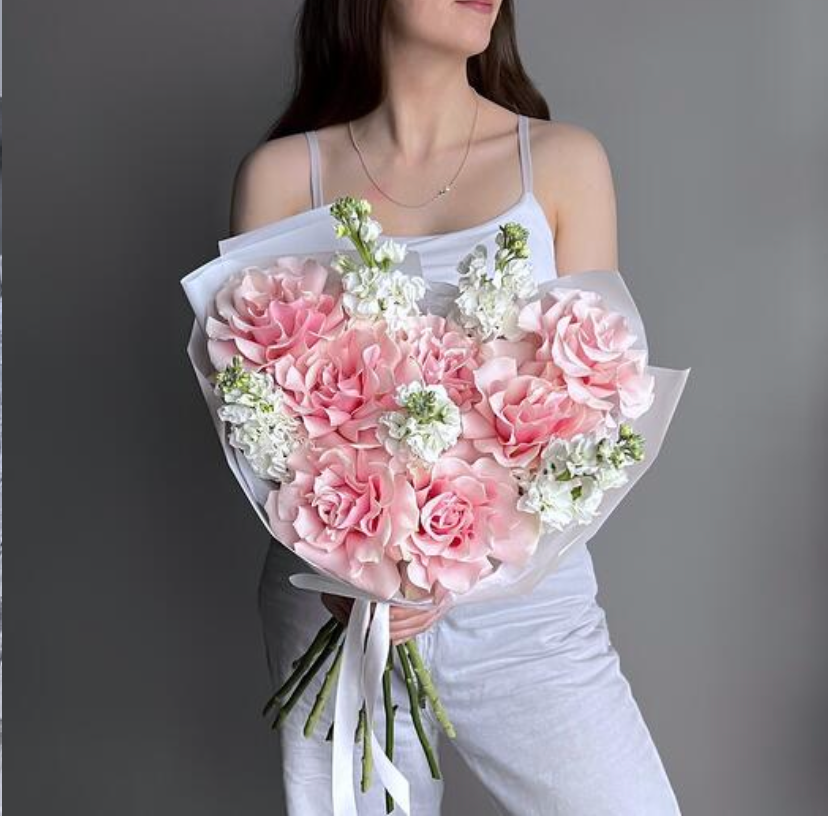 Букет французских роз и матиолы