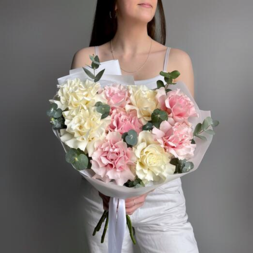 Букет французских роз с эвкалиптом