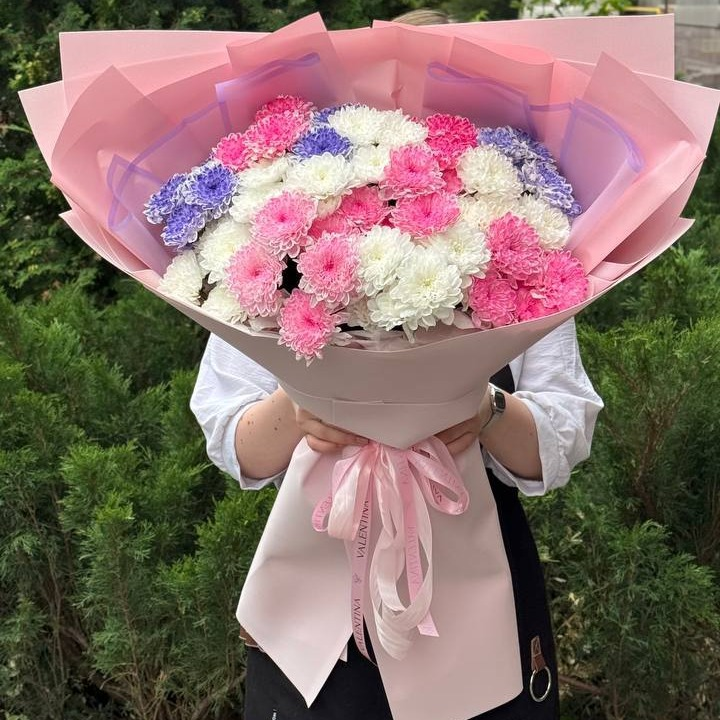 Букет гигант из хризантем с оформлением