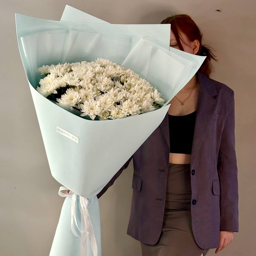 Огромный гигант из белой, пушистой и невероятно стойкой хризантемы! Обрадуйте и удивите своих близких таким букетом. Подойдет для любого праздника: День рождения, Новый год, День Матери, 8 марта и...