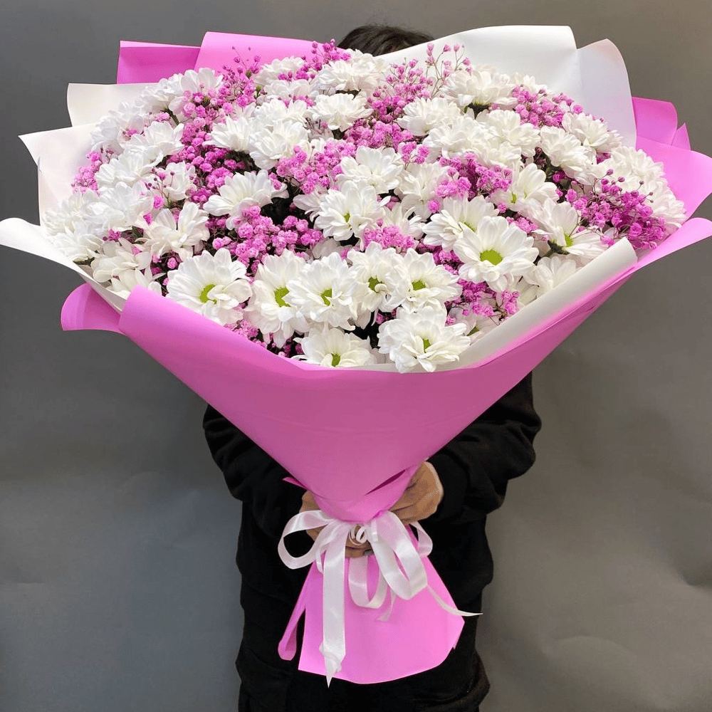 Букет- гигант "Розовая невесомость" из хризантем и гипсофил