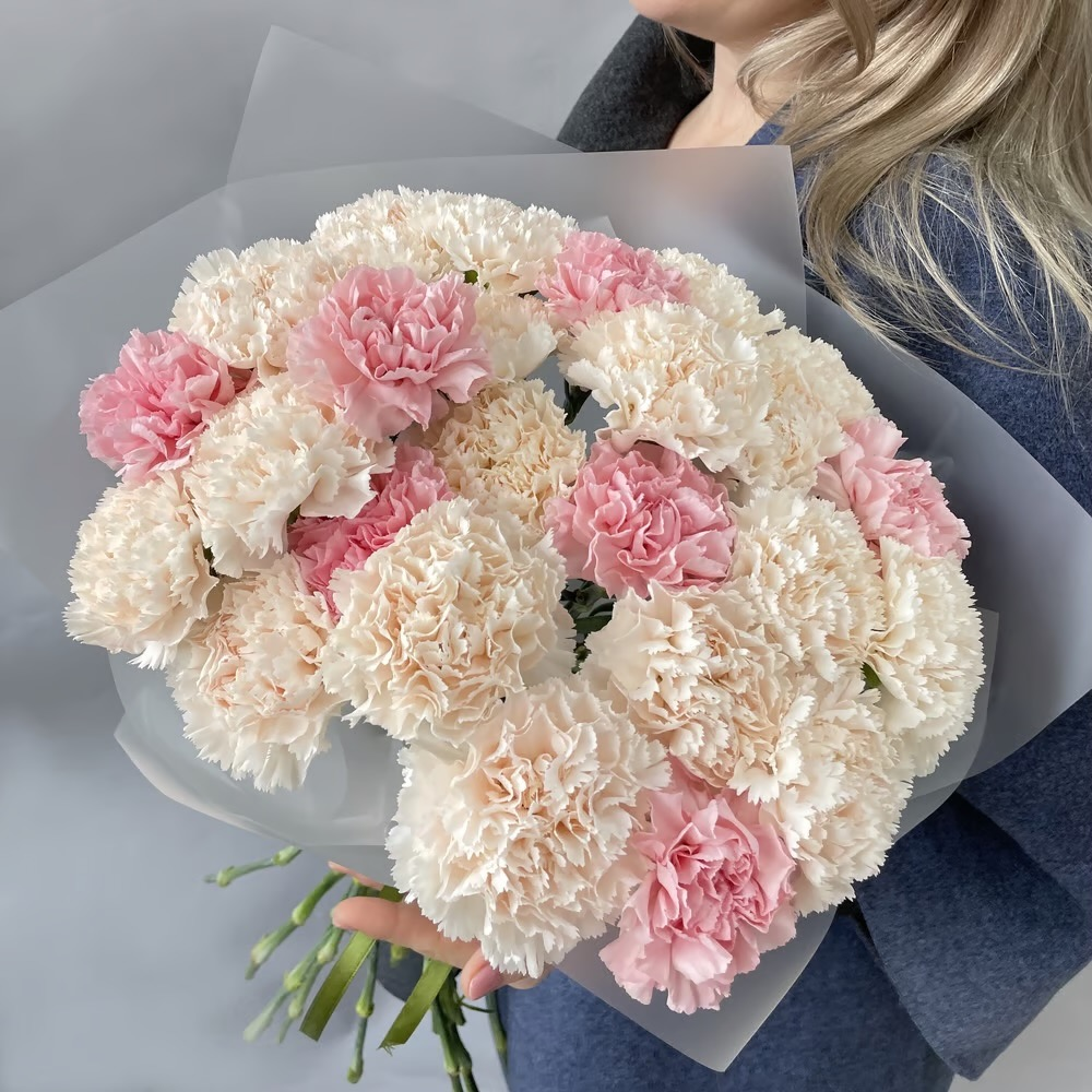 Гвоздики, известные своими нежными лепестками и прекрасным ароматом, создают романтическую атмосферу и с гордостью украшают любое помещение. Этот букет станет отличным подарком для любого случая - от дня рождения до празднования особого события. Он призван порадовать и восхитить своей красотой и нежностью любого получателя.