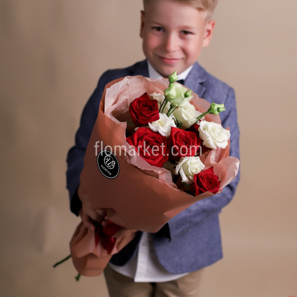 Букет Hearts из роз и эустом