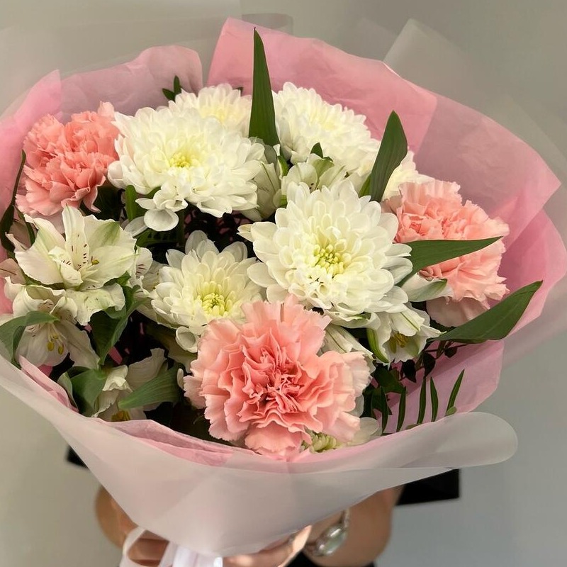 Нежный букет из диантусов, ажурной хризантемы и милых альстромерий для ваших близких Подарки к каждому букету: -Бесплатная открытка с вашим текстом. -Инструкция к букету. Инструкция по уход...