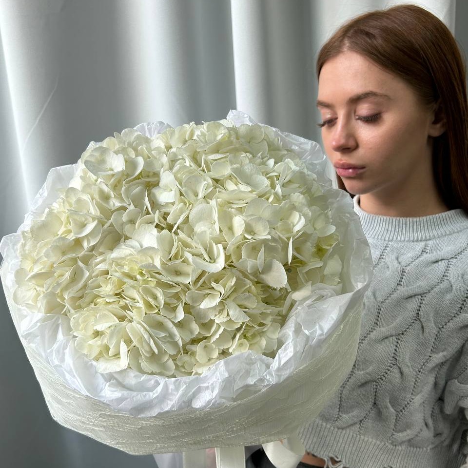 Нежный букет из трех белых гортензий в кружевной упаковке - идеальный подарок для любого случая! Элегантный букет отличается белоснежными соцветиями, праздничной кружевной упаковкой, длительным сроком свежести и изысканным внешним видом. Подходит для мамы, жены, коллеги, подруги или начальницы - станет отличным подарком на день рождения, юбилей, корпоратив или просто приятным сюрпризом без повода. Универсальный букет, который точно порадует получателя и создаст особую атмосферу в любом интерьере.