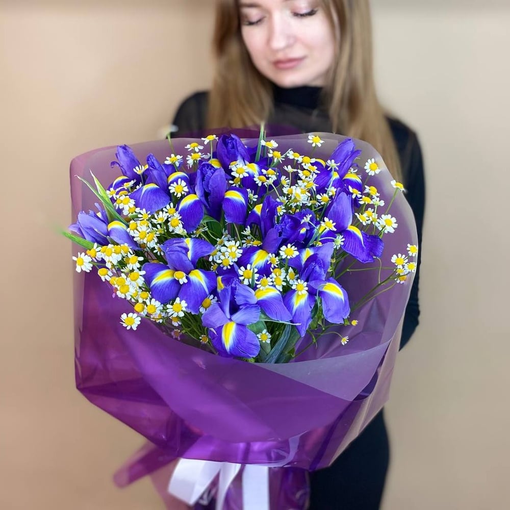 Букет ирисов и ромашек