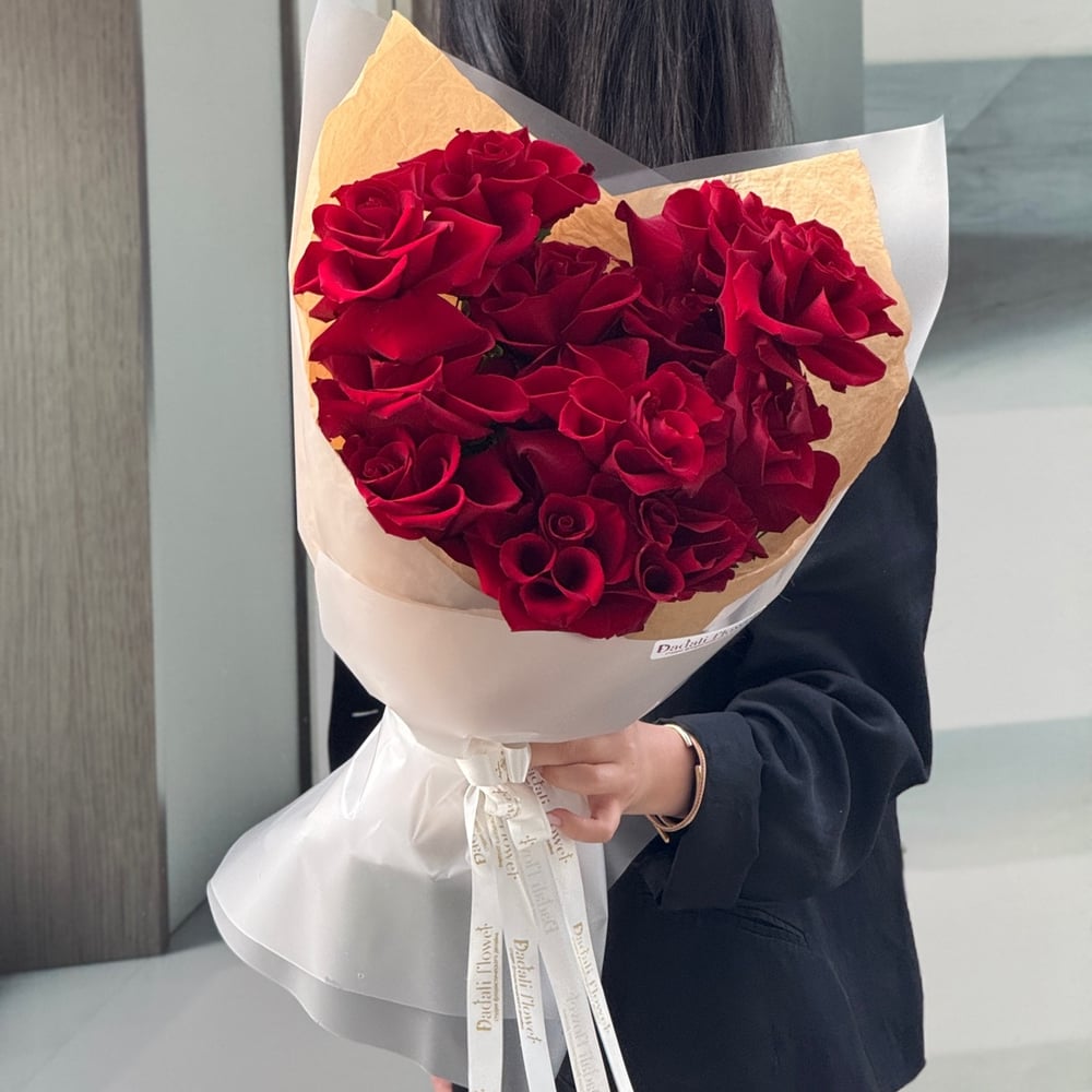 Букет составлен из красных кружевных роз