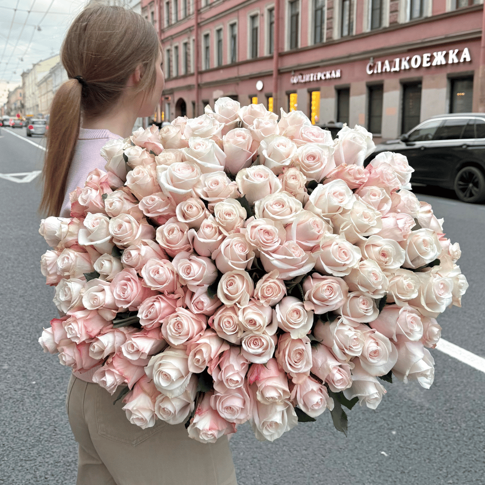 Шикарный букет из 101 эквадорской розы сорта pomarosa Отличный подарок по любому поводу и без!