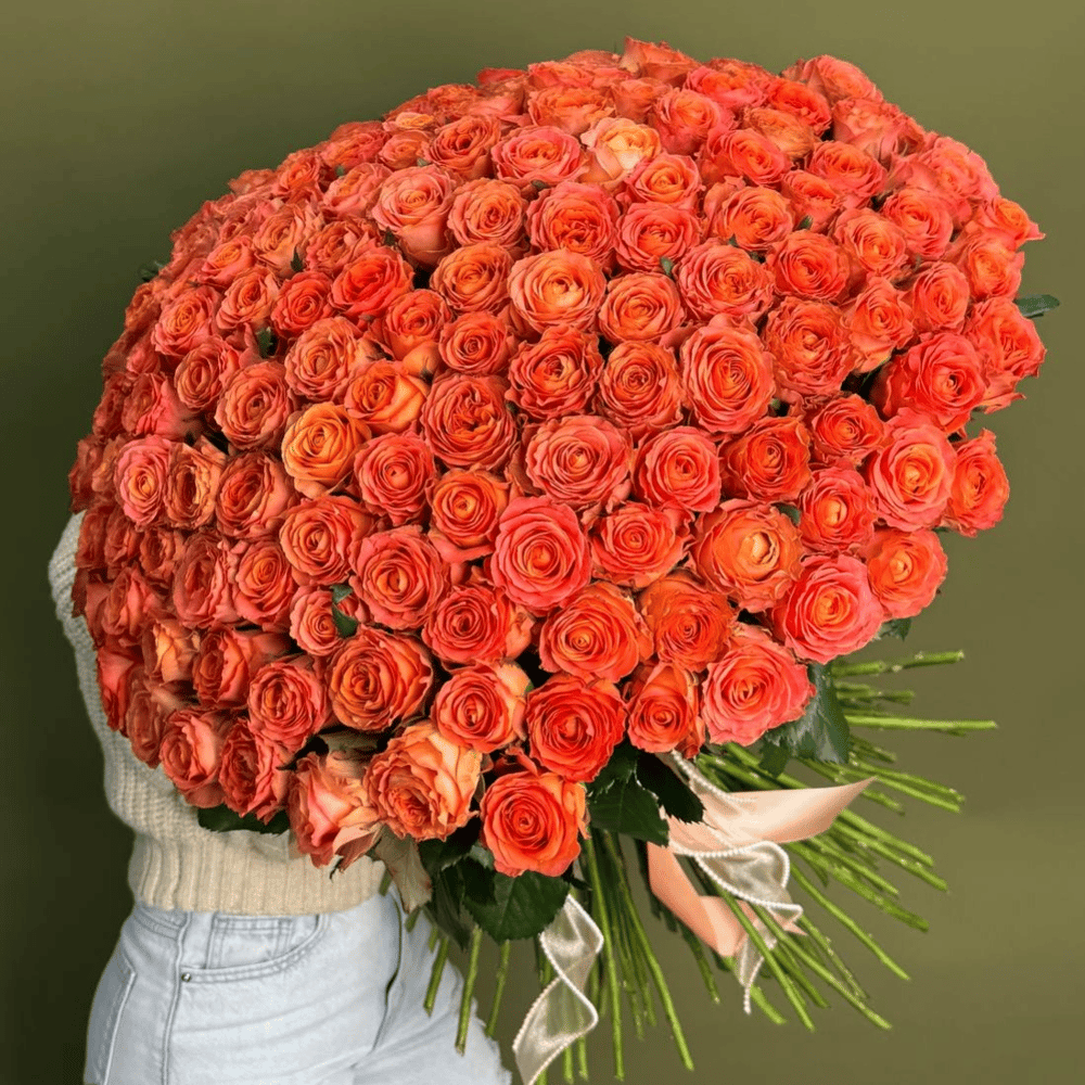 «Коралловый Шторм» — это не просто букет. Это:признание, от которого перехватывает дыхание, извинение, которое невозможно не простить, способ сказать «ты — моя стихия» без лишних слов. Идеален для: предложения руки и сердца, грандиозного «прости» или «спасибо», дня рождения самой важной женщины, юбилея отношений, когда хочется превзойти самого себя годичной давности. В оформлении: аккуратно собран в плотный круг, стебли выровнены, перевязан широкой атласной лентой в тон (нежно-персиковой или кремовой) с длинными струящимися концами. Никаких лишних деталей — только чистая мощь цвета и формы. Этот букет не оставляет равнодушным никого. Получив его, она точно поймёт: здесь не просто 101 роза. Здесь — 101 причина быть счастливой.