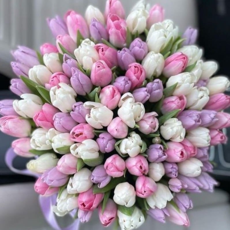 Яркий калейдоскоп эмоций: разноцветный букет из тюльпанов оживляет любое пространство, даря радость и позитив. Символ жизненной энергии и праздника.