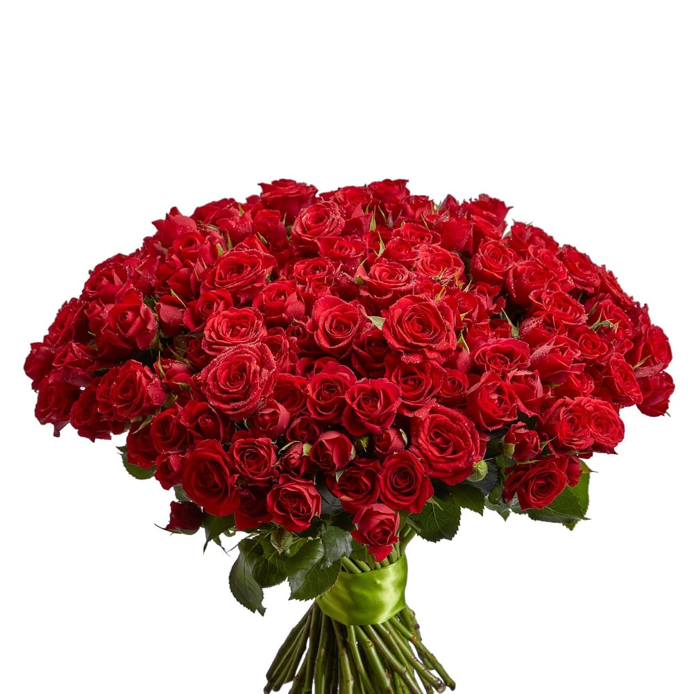 Букет из роз, оформленные в фирменную упаковку и перевязан лентой.