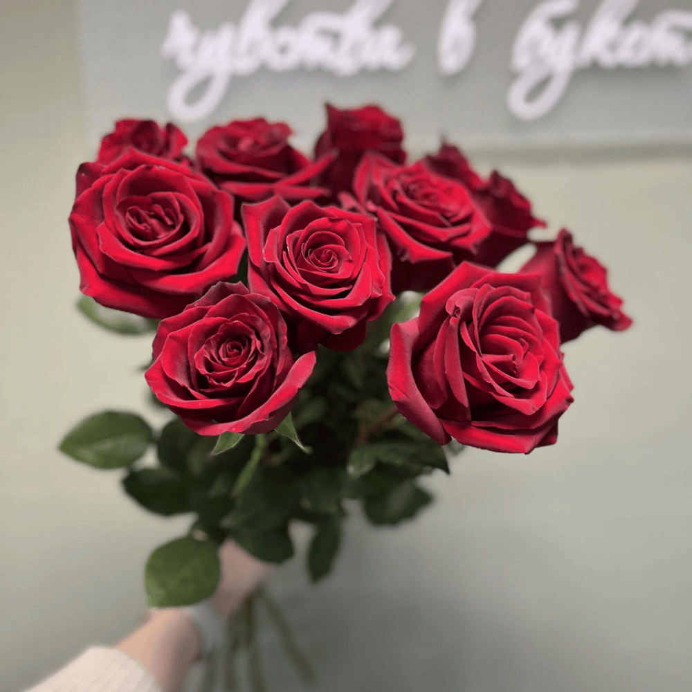 Букет из 11 красных роз Эквадор, перевязанные атласной лентой