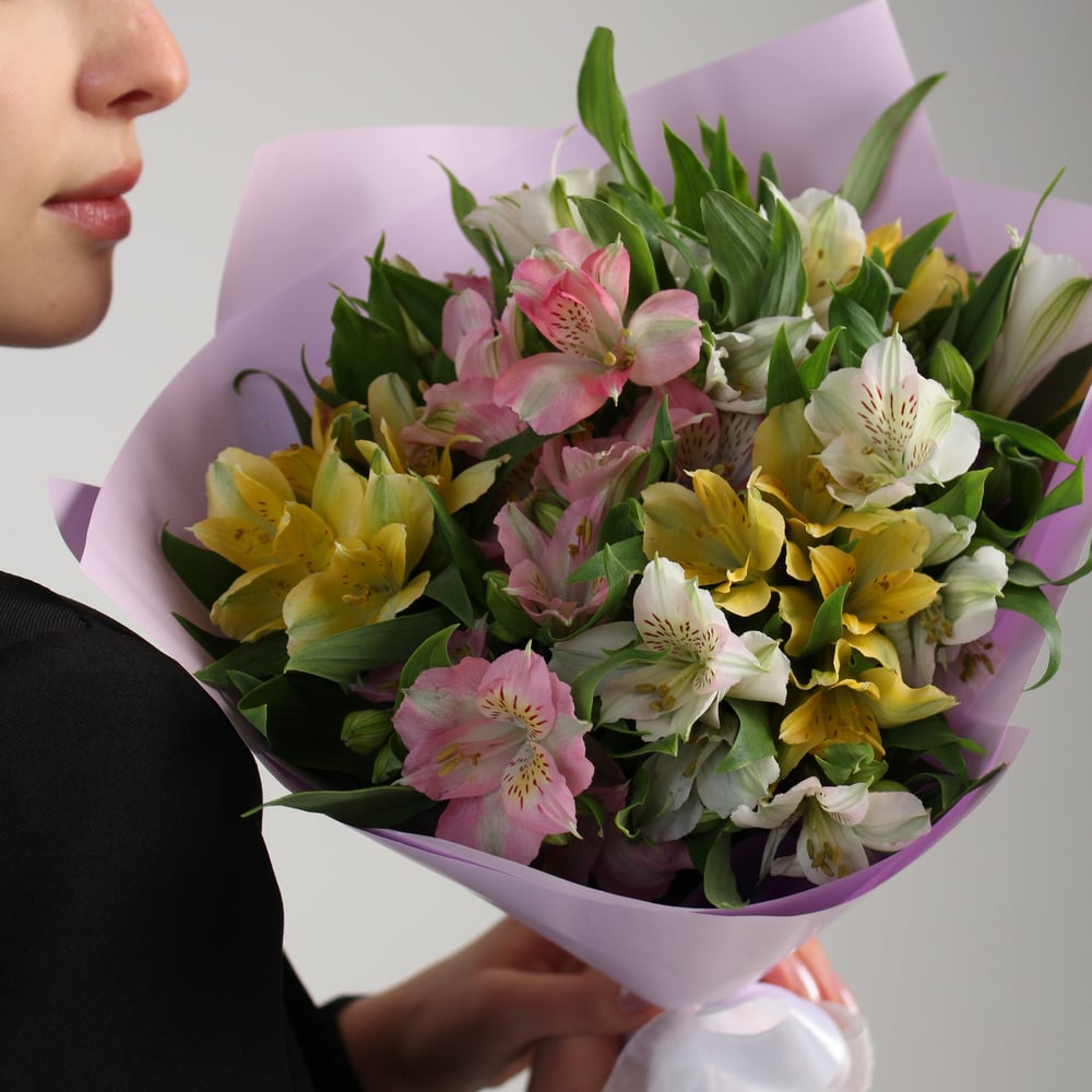 Букет из 11 разноцветных альстромерий