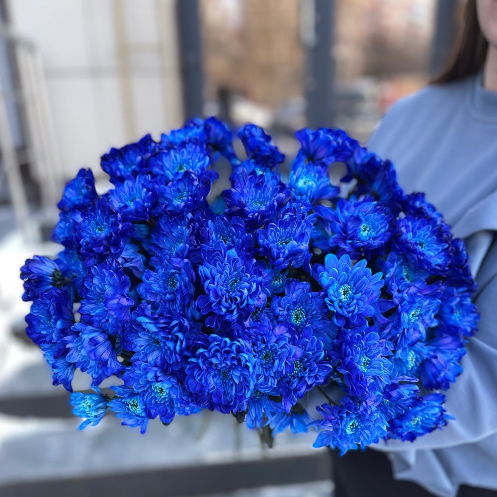 Букет из 11 синих кустовых хризантем