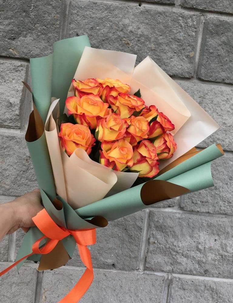 Букет из 11ти оранжевых кенийских роз