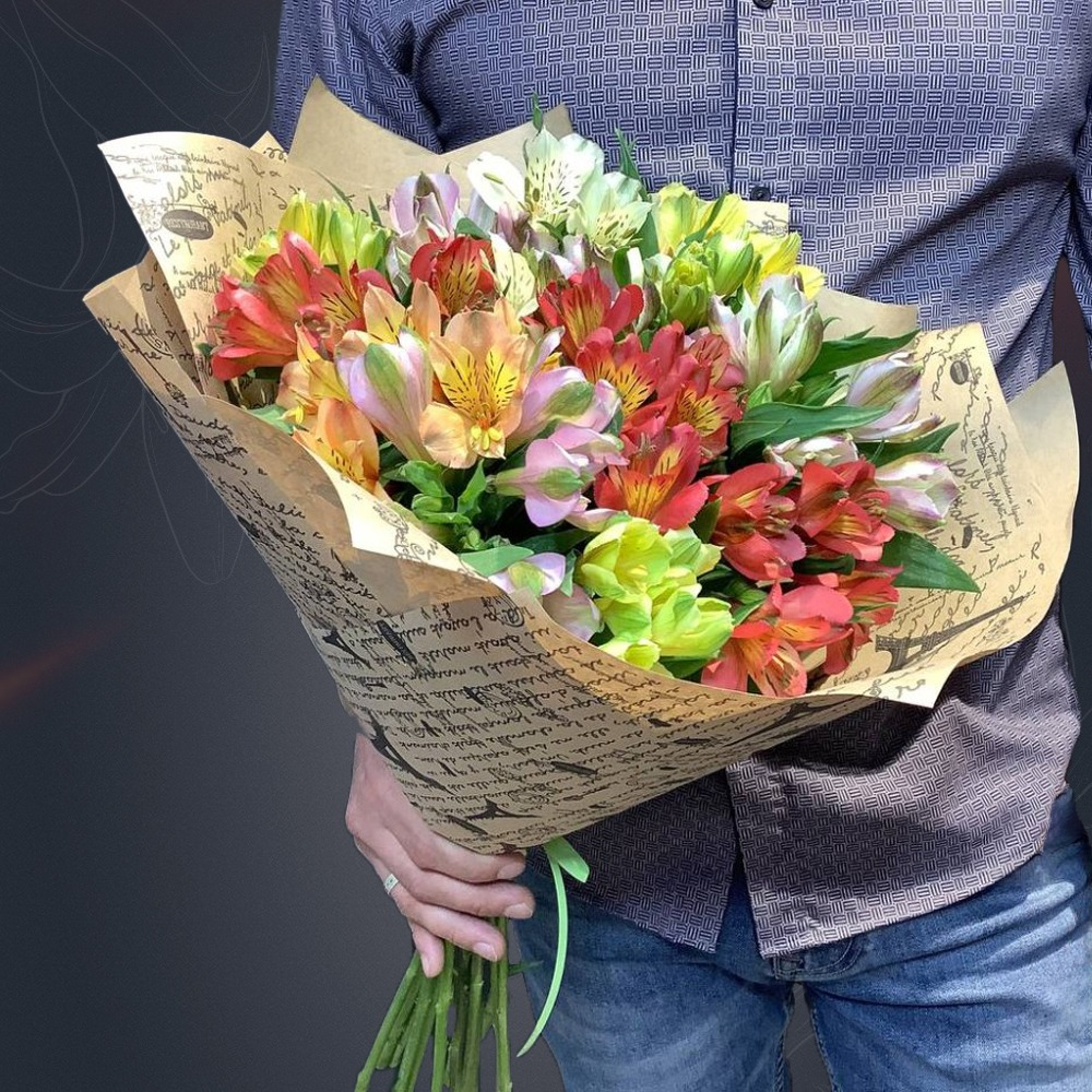 Букет из 15 альстромерий микс в крафте