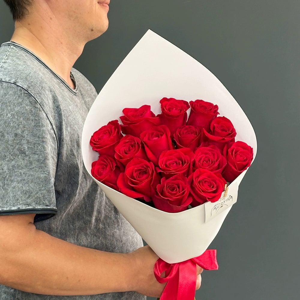 Этот роскошный букет из 15 красных роз — идеальное выражение искренних чувств и глубокого признания в любви. Каждая роза символизирует страсть, уважение и желание быть рядом, а их количество усиливает значимость и серьёзность послания.