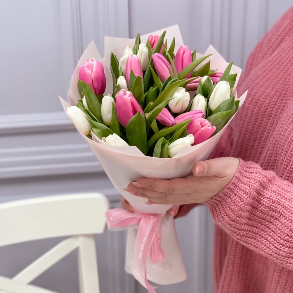 Солнечное и нежное сочетание 21 ярких тюльпанов. Восхитительная красота этих цветов будет радовать глаза и заряжать позитивной энергией. Букет оформлен в упаковку, что придает ему особый шарм и современный вид. Этот яркий букет станет отличным презентом для любого случая, а также поднимет настроение и добавит уюта в доме.