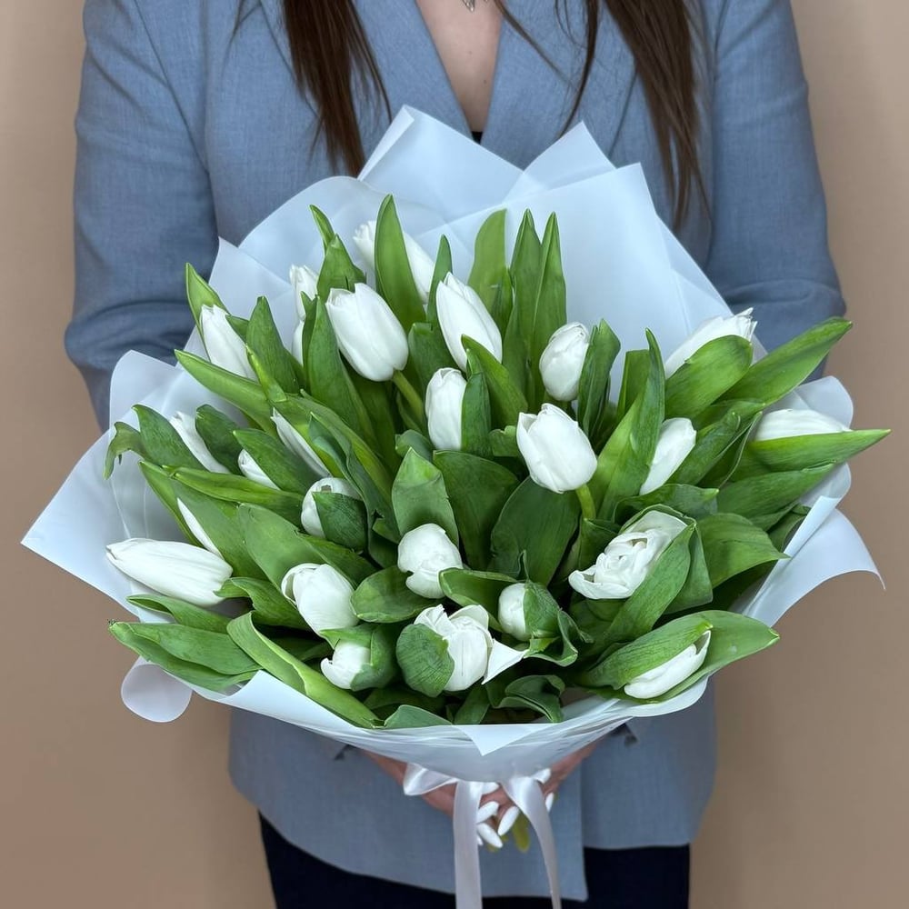 Букет из 25 белых тюльпанов