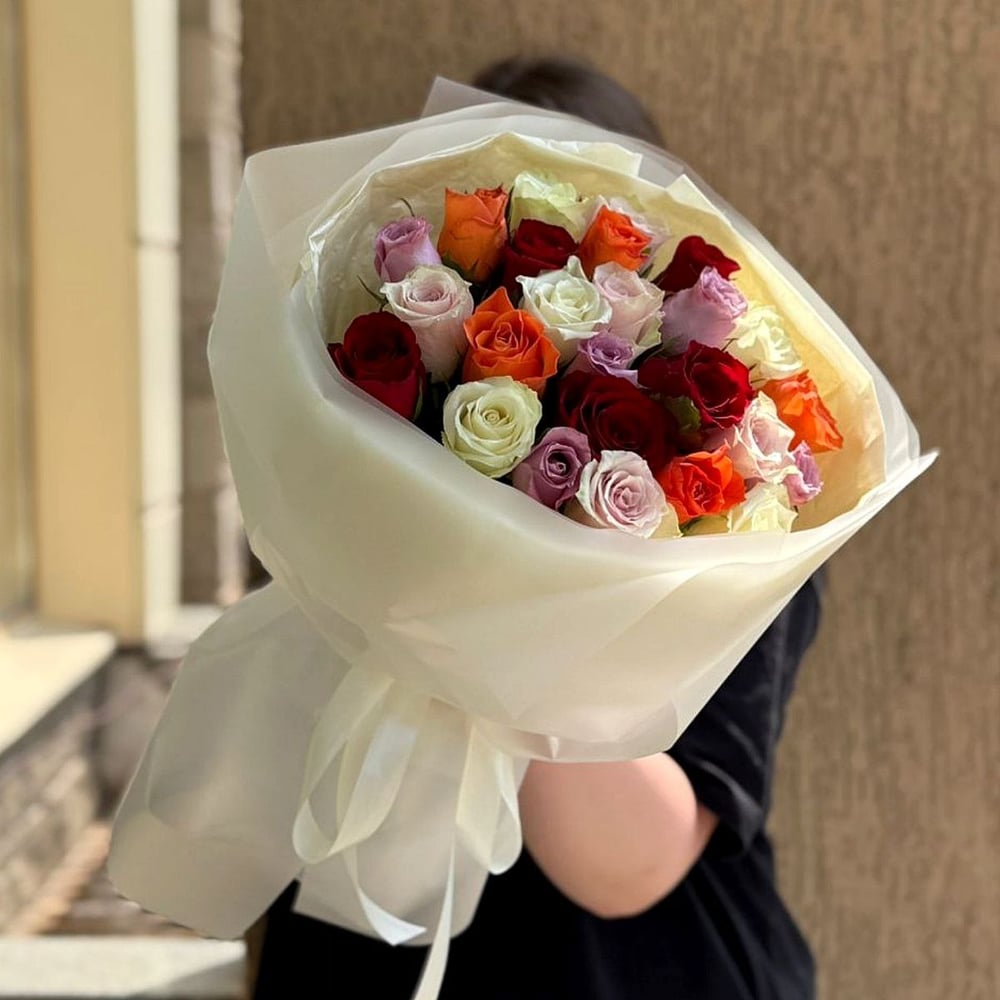 Букет из 25 Кенийских роз Микс — воплощение яркости и очарования природы. Богатая палитра оттенков, от нежных пастельных до насыщенных ярких, создает удивительную гармонию и привлекает внимание сво...