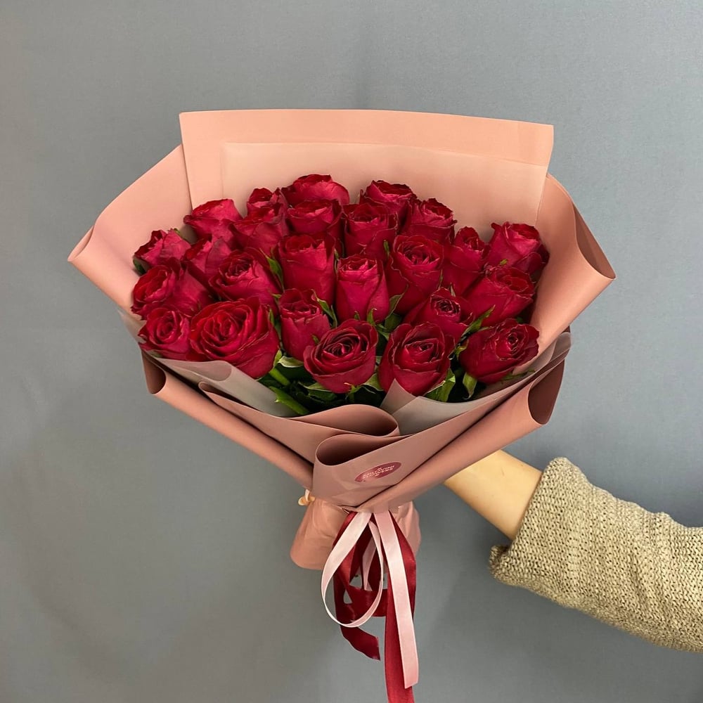 Невероятный букет из 25 красных кенийских роз❤️ Станет классным подарком на день рождения, юбилей, свадьбу, помолвку, а также приятным сюрпризом без повода😇 Букет подойдёт в подарок для любимой женщины, мамы, бабушки, коллеги, учителя, делового партнера или же подруги • КЭШБЭК 5% с каждой покупки бонусами; • Молниеносная доставка; • Всегда свежие цветы за счет прямых поставок каждые 2 дня; • Быстрая сборка букетов от 10 минут; • Удобрение для цветов к каждому заказу; Советы по уходу: ⁃ Перед тем, как поставить цветы в холодную воду, стебли необходимо подрезать на 1 см под острым углом; ⁃ Менять воду необходимо каждые два дня; ⁃ Цветы хорошо себя чувствуют в прохладном месте, вдали от отопительных приборов, сквозняков и солнечных лучей; ⁃ Сухие и увядающие листья и бутоны необходимо удалять, так как они поглащают питательные вещества; ⁃ Композицию в коробке/корзине/лукошке так же необходимо поливать раз в два дня, в центр достаточно подлить 1/2 стакана прохладной воды🙏🏻 Будем рады принять Ваш заказ и подарить Вам незабываемые эмоции🥰