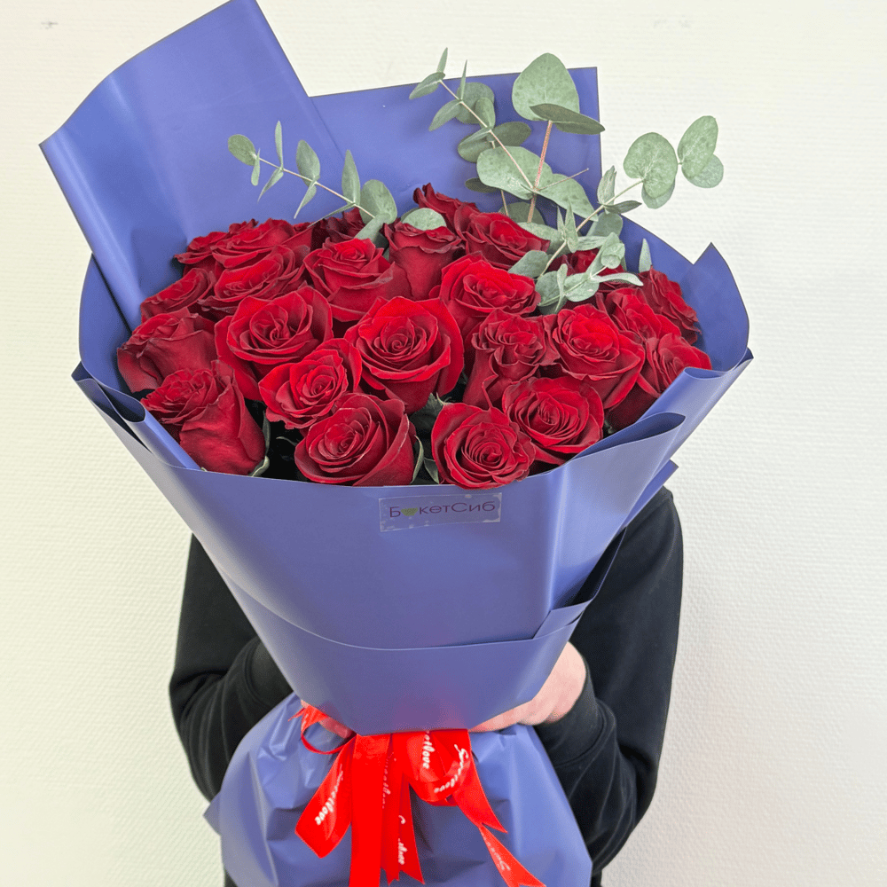 Букет из 25 красных роз в оформлении