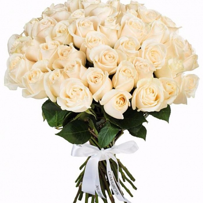 Букет из роз, оформленные в фирменную упаковку и перевязан лентой.