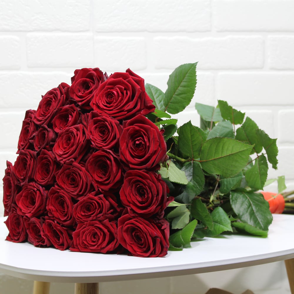 Букет из 29 красных роз в ленте