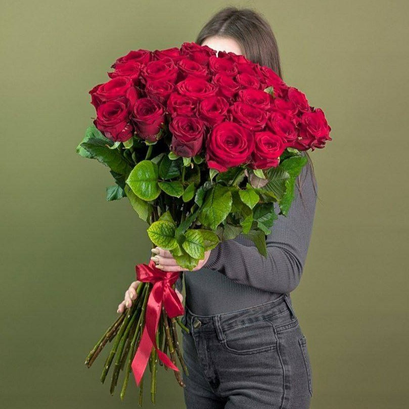 29 российских красных роз Red Naomi 60 см — ярко-алые, бархатные, с крупным бутоном и лёгким ароматом. Букет плотный, аккуратный, перевязан простой красной лентой. Классический красный букет, кот...