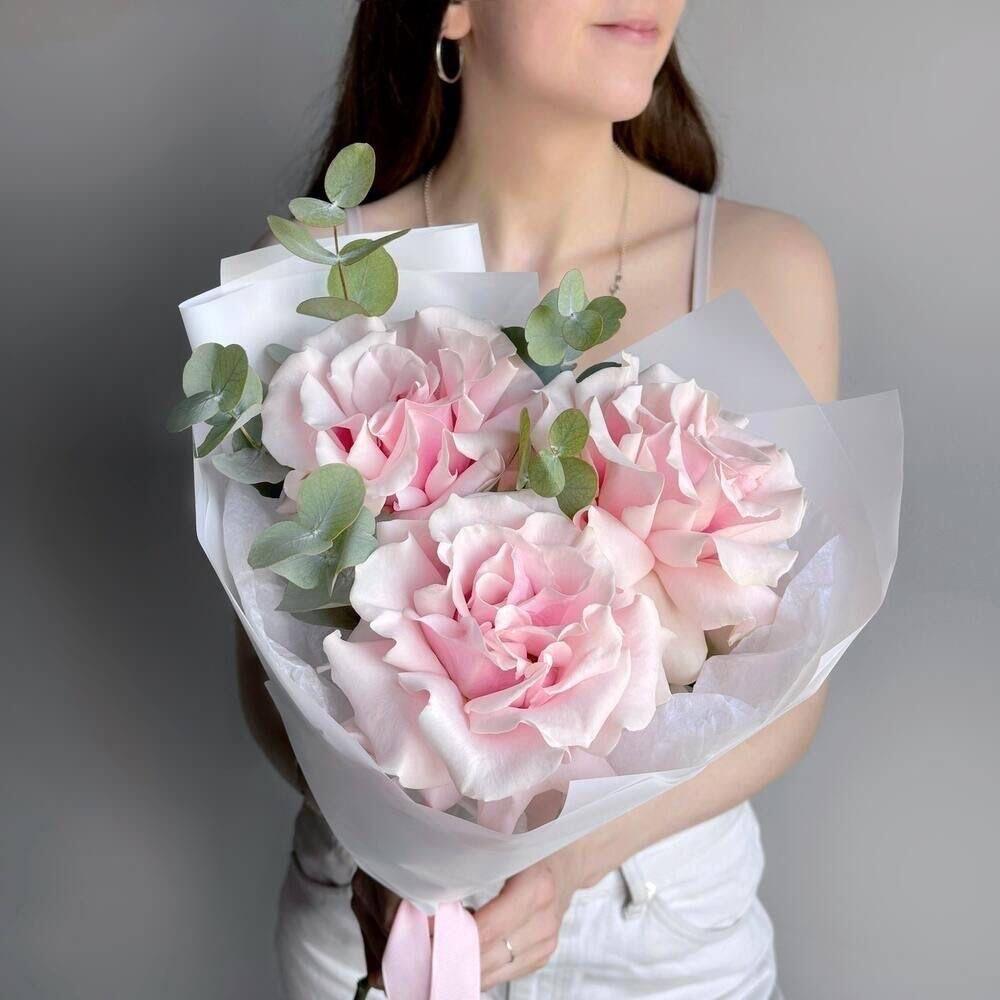 Букет из 3 французских роз с эвкалиптом