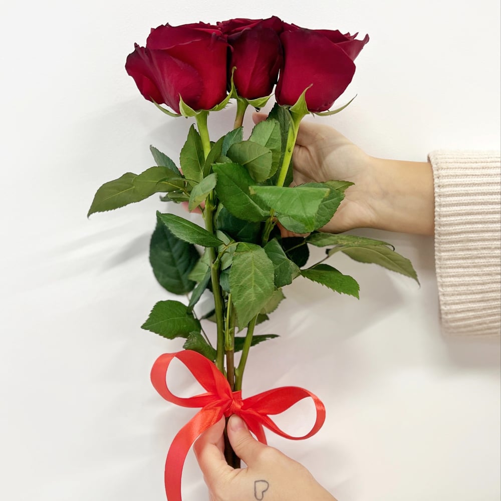 Букет из 3 красных роз под ленту