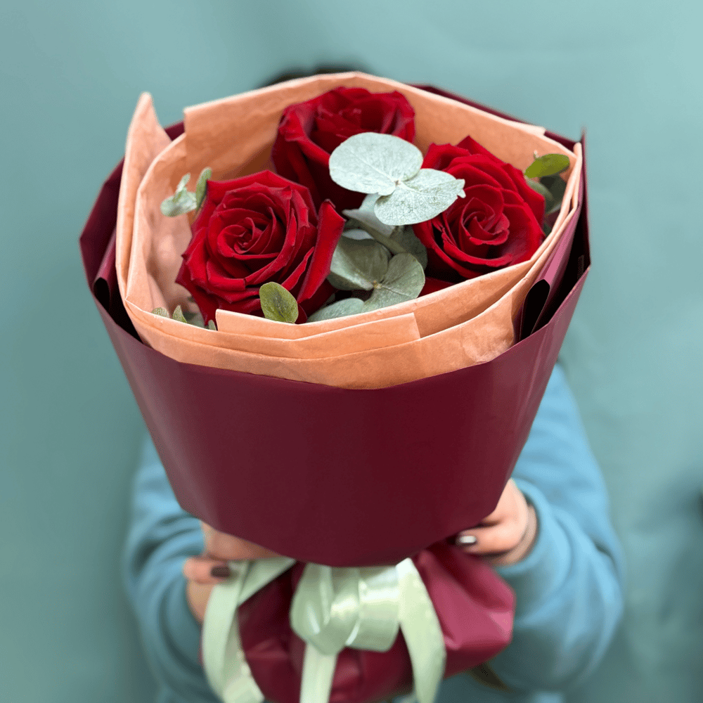 Букет из 3 роз и эвкалипта