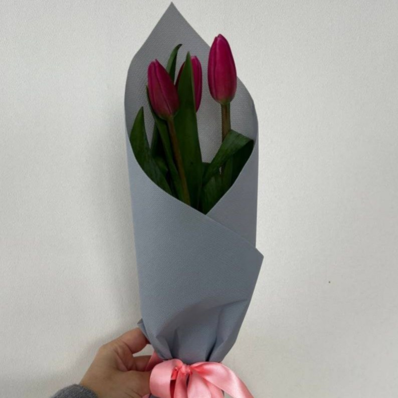 Подарите частичку весны с букетом из трёх розовых тюльпанов! Их нежные лепестки, словно румянец на щеках, излучают тепло и доброту. Розовый цвет — это символ нежности, восхищения и искренних чувств...