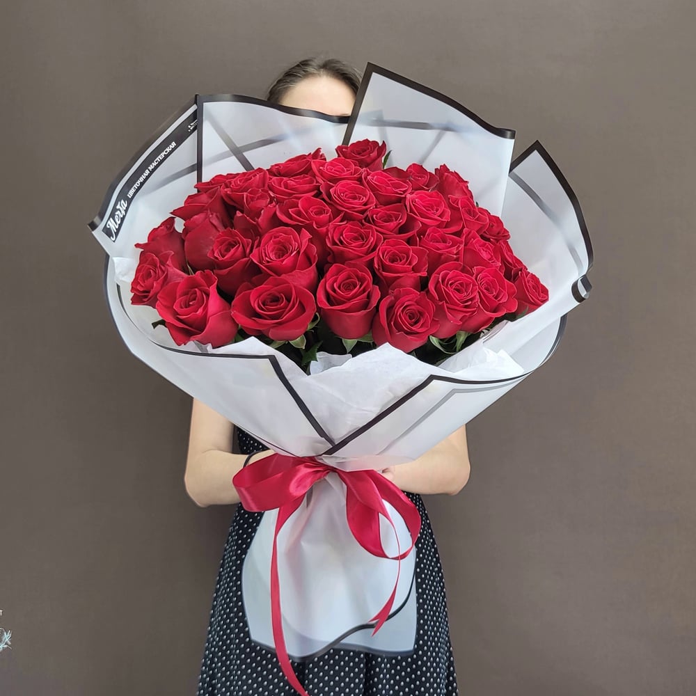 Этот роскошный букет из 35 красных роз "Ассоль" — символ страсти, красоты и элегантности. Каждая роза отличается насыщенным, глубоким красным оттенком и крупными, идеально сформированными бутонами с бархатистыми лепестками. Созданный с особой тщательностью, букет "Ассоль" прекрасно подойдет для выразительного признания в любви, важного юбилея или праздничного события.