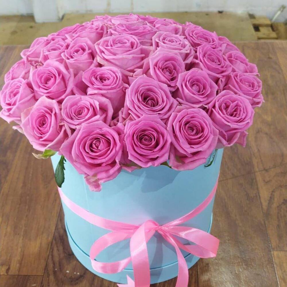 Прекрасный букет из 35 роз в шляпной коробке🙂