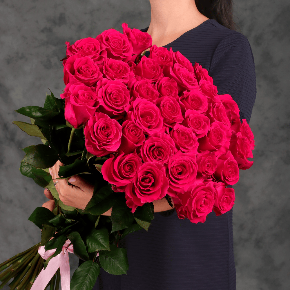 Классический букет из 35 розовых эквадорских роз 60 см с атласной лентой от 2name flowers подарите своим близким и любимым незабываемые эмоции с помощью этого прекрасного букета из 35 розовых эква…