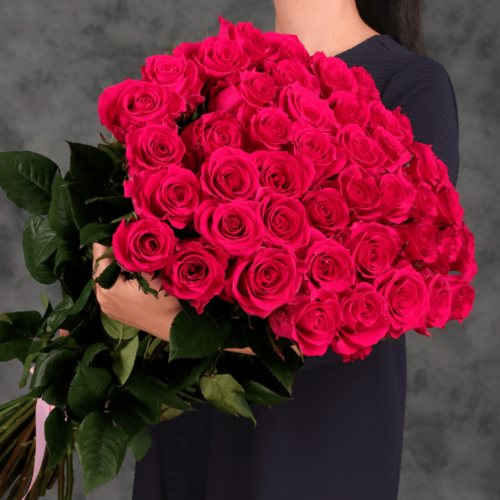 Классический букет из 45 розовых эквадорских роз 60 см с атласной лентой от 2name flowers подарите своим близким и любимым незабываемые эмоции с помощью этого великолепного букета из 45 розовых эк…