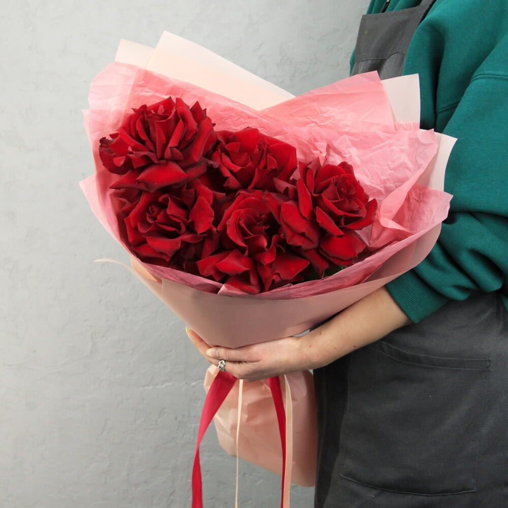 Букет из 5 красных французских роз. В дополнении к нашим букетам идет Сладкий подарок от магазина