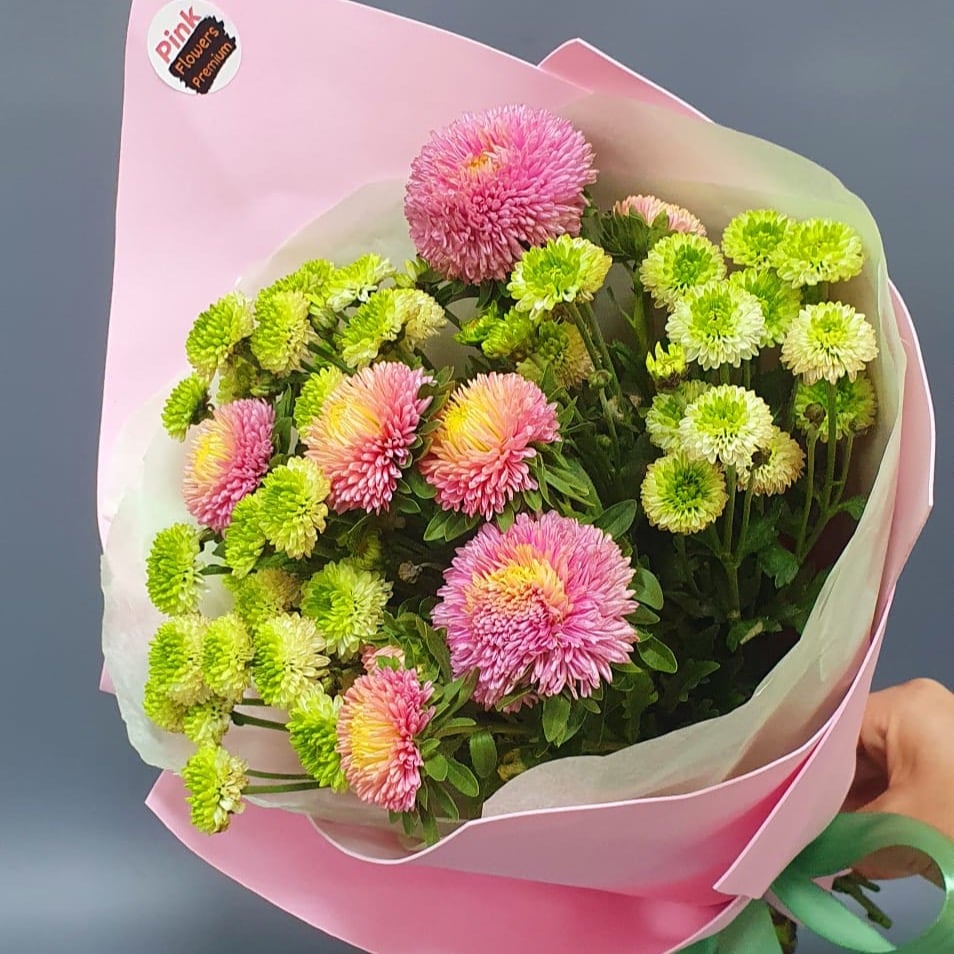 Букет состоит из 5 кустовых хризантем разных сортов, которые являются одним из самых изящных и популярных цветов в мире флористики. Хризантемы символизируют радость и оптимизм. Этот букет станет прек…