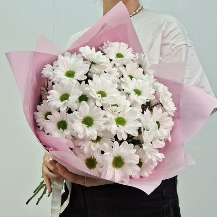 Очень нежный букет с кустовой хризантемой. У хризантемы много значений и толкований. Дополнив подарок хризантемным букетом, можно и рассказать о своей верности, и приободрить, и выразить симпатию. Составляйте индивидуальные послания с помощью одного из самых благородных цветов! как ухаживать за цветами: - обновите срез цветов ножом или секатором на 1 см под углом 45 градусов; - поставьте цветы в вазу с холодной водой, предварительно добавив средство для продления жизни цветов; - поставьте вазу подальше от отопительных приборов и солнца; - меняйте воду каждый день и обновляйте срез. Успейте стать его обладателем, или порадовать им своих любимых и близких!