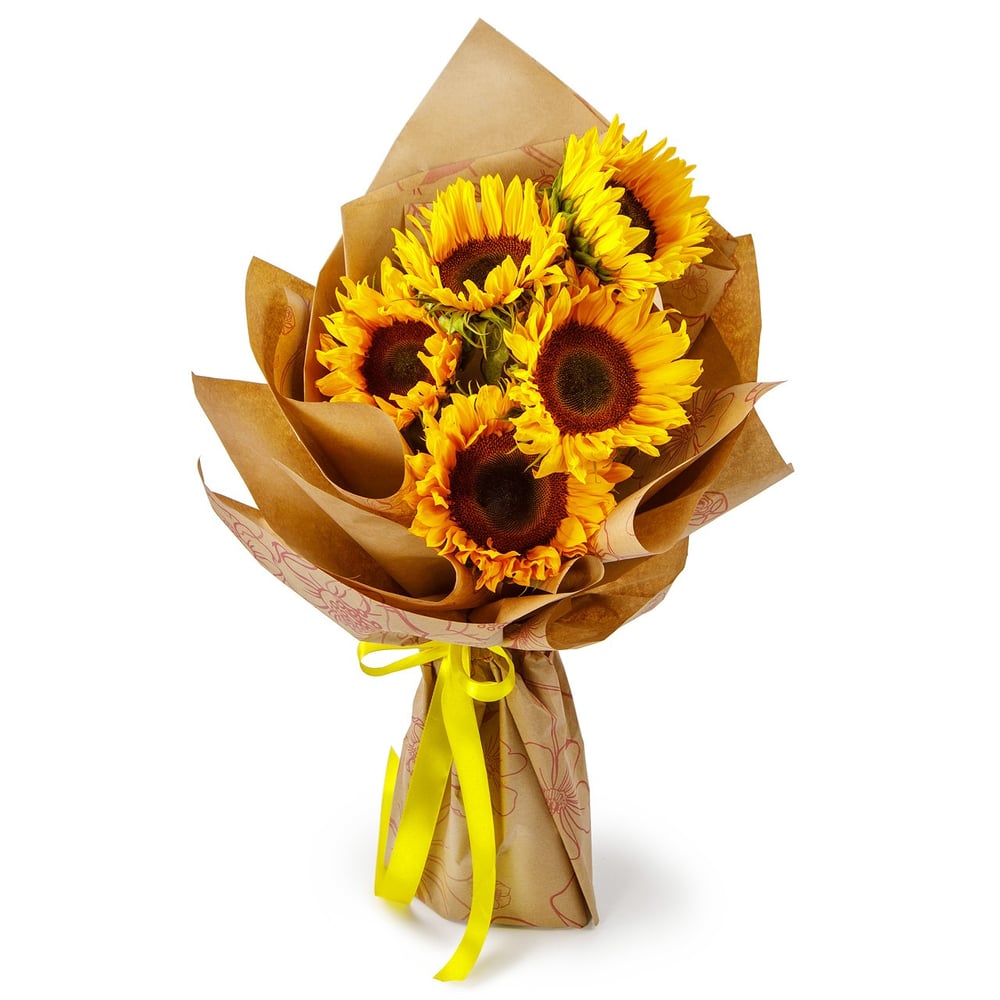 Букет из 5 подсолнухов в крафт упаковке