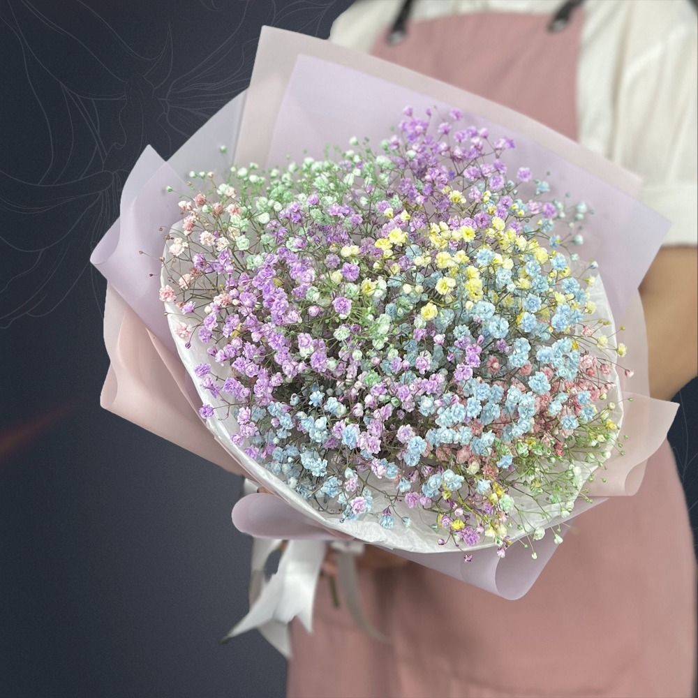 Букет из 5 радужных гипсофил в матовой пленке с атласной лентой от 2name flowers – это стильный и элегантный подарок, который подойдет для любого повода. Разноцветные гипсофилы создают неповторимую я…