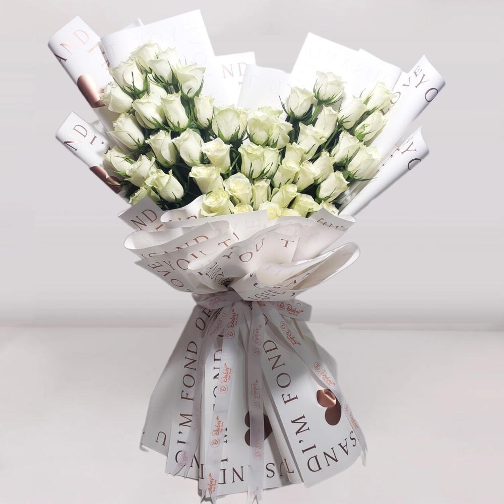 Упаковка - 8 шт белых роз - 51 шт