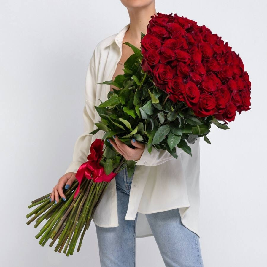 Букет из 51 красных роз создан для девушек, предпочитающих яркие и чувственные презенты. От этих изумительных свежих цветов исходит пряный, слегка возбуждающий аромат. Как тут не потерять голову! роскошные розы очаруют вашу возлюбленную, окутают ее сладким предчувствием счастья. Вряд ли найдется девушка, которая сумеет устоять перед их красотой. Дарите цветы любимым, и всегда будете получать в ответ нежное «да»!