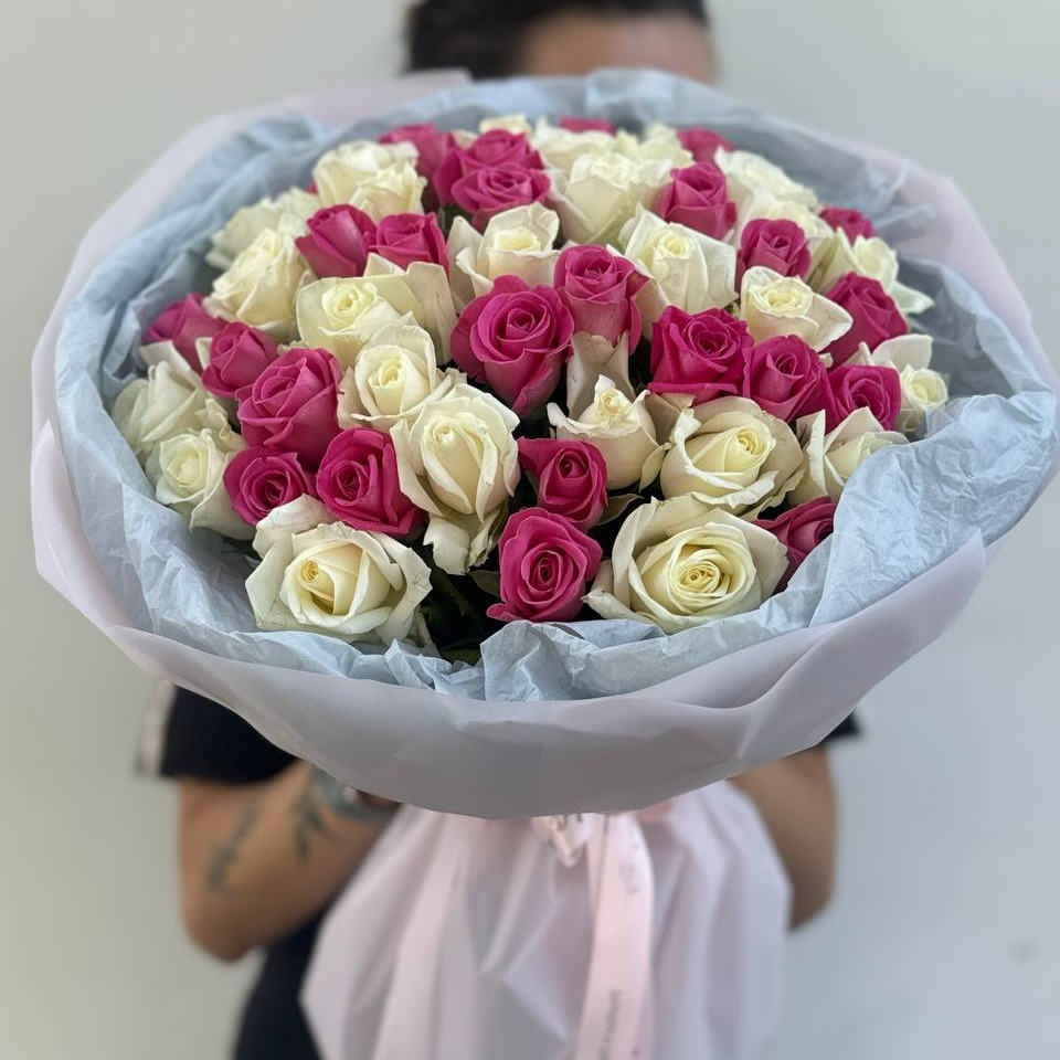 Букет из 51 розы 40 см в оформлении